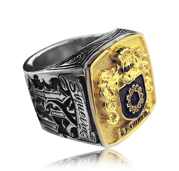 Mixed Gold-Silver Ring Family Crest